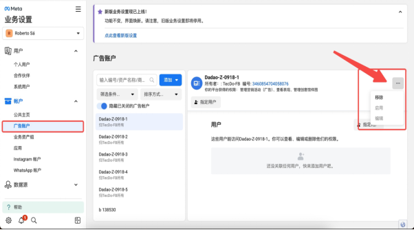 Once the BM you used is no longer in use due to various reasons, you need to transfer the original ad account to a new BM (ordinary users need a new BM, and three unlimited users can use the old BM). After the transfer, the ad accounts in the original BM will need to be removed. Here's how: